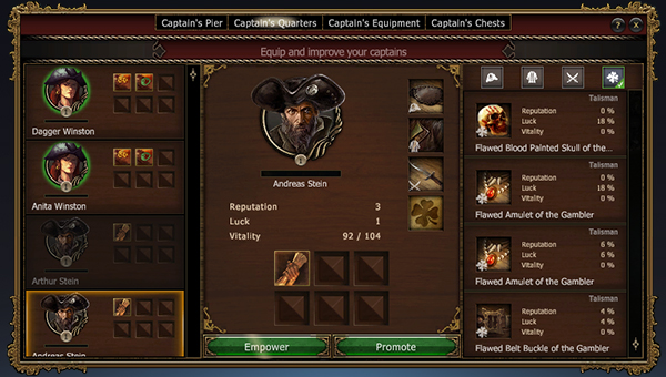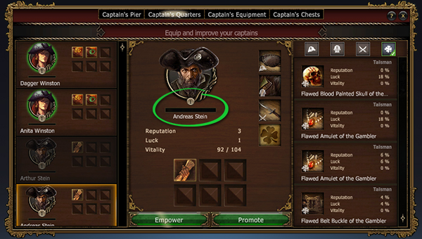 У каждого капитана свои начальные характеристики, и его потенциал зависит от этих начальных характеристик. Среди капитанов не бывает мастеров на все руки, но уже с самого начала можно определить, талантлив ли капитан или просто обладает нужными способностями.